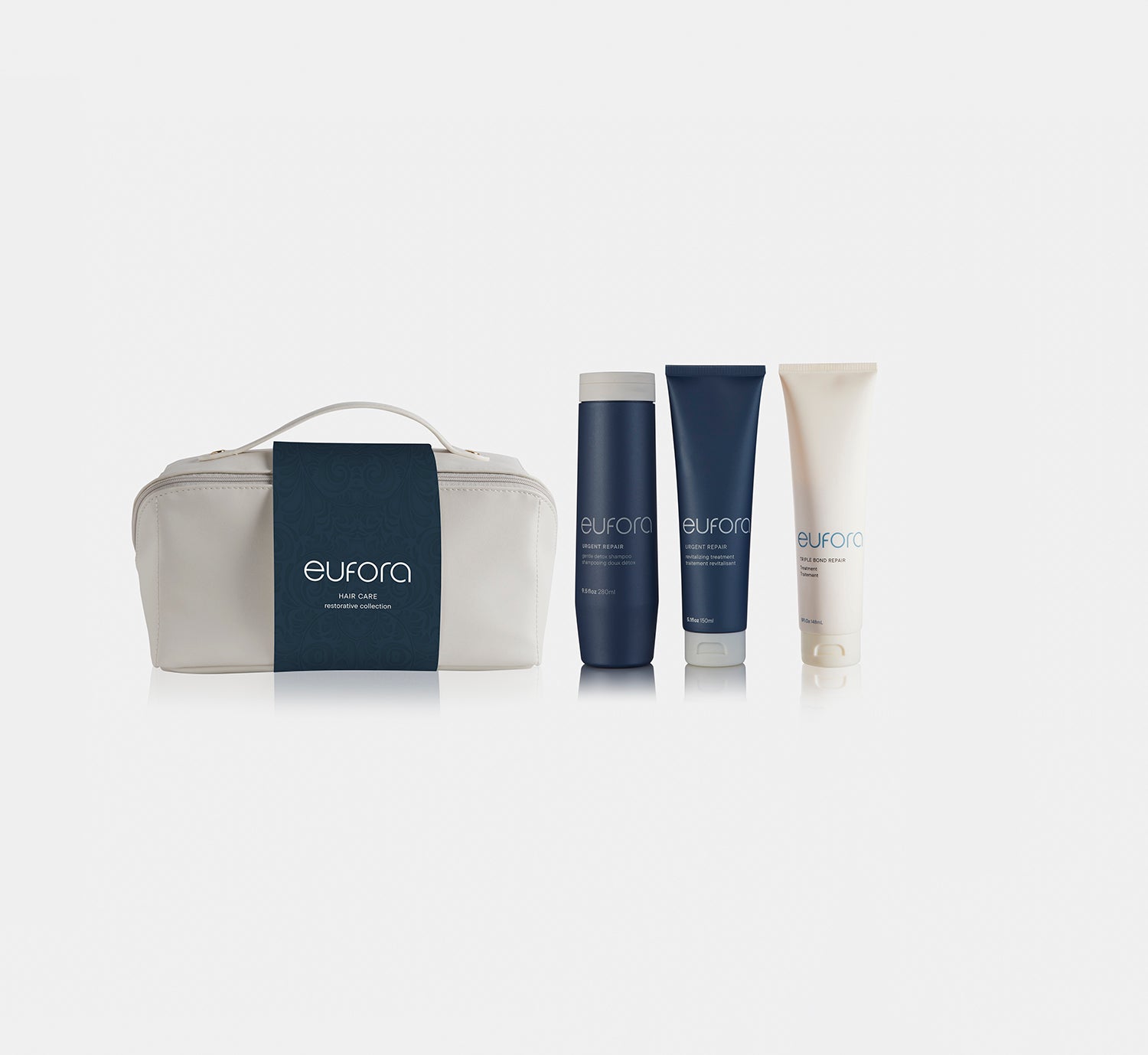 Purchase the collection of three HAIR CARE restorative products, and receive the EUFORA holiday travel bag FREE.
